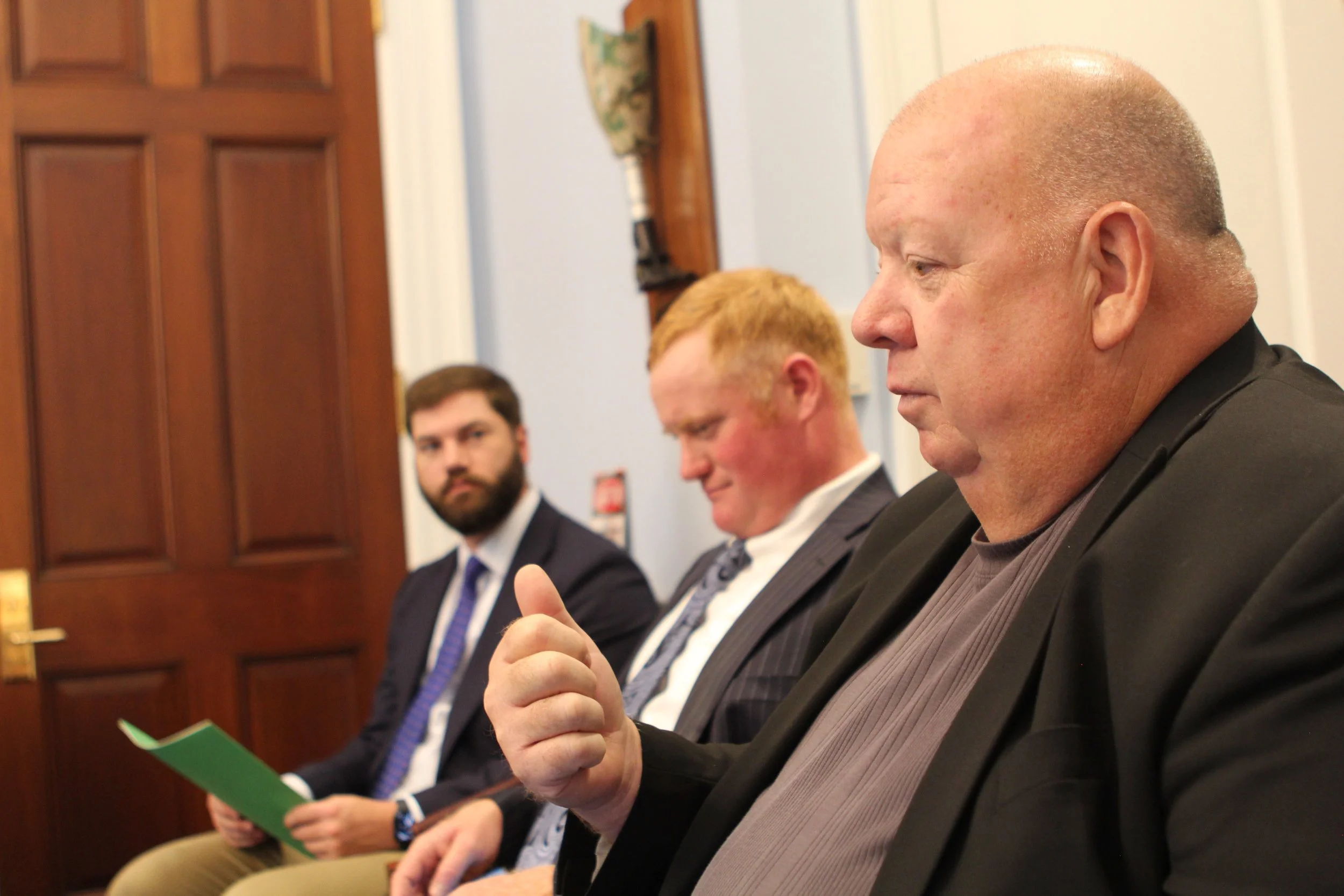 Tom Hoscheit, de Caledonia, Minnesota, detalla las posiciones de AMPI sobre la reforma de la Orden Federal de Comercialización de la Leche durante su visita al representante estadounidense G.T. Thompson, presidente del Comité de Agricultura de la Cámara de Representantes.